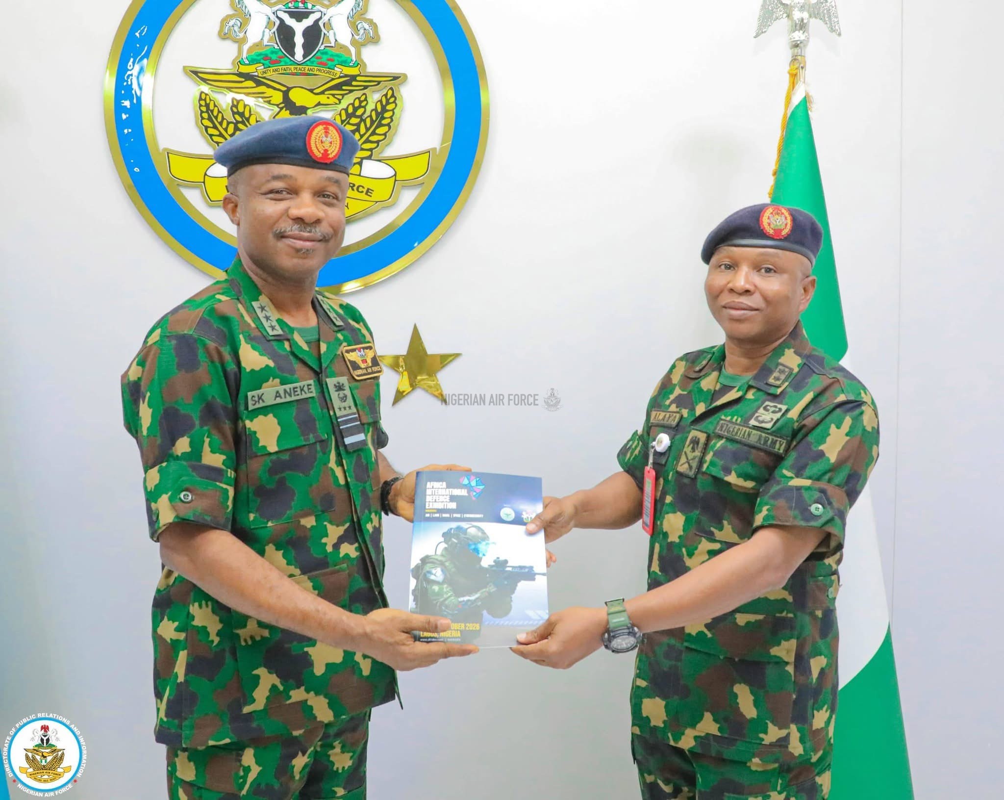The Chief of the Air Staff (CAS), Air Marshal Sunday Kelvin Aneke, received the Director General of the Defence Industries Corporation of Nigeria (DICON), Major General BI Alaya, during a courtesy visit held recently at Headquarters Nigerian Air Force (NAF). The visit provided an opportunity for the DG to introduce the Africa International Defence Exhibition (AFRIDEX) Committee and present the President of DMG Events, who delivered an insightful overview of the upcoming continental exhibition.