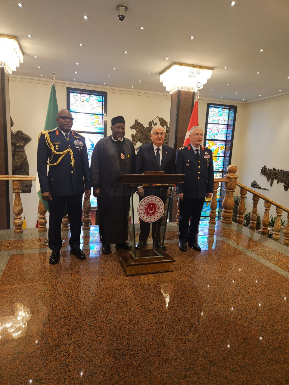 The Honourable Minister of Defence (HMOD), Mohammed Badaru Abubakar and the Chief of the Air Staff (CAS), Air Marshal Hasan Abubakar are currently in Turkiye to facilitate the speedy delivery of the T-129 ATAK helicopters acquired for the Nigerian Air Force (NAF) by the Federal Government. As part of programmes lined up for the visit, the HMOD held talks with his Turkish counterpart, Lieutenant General Yasar Guler (Rtd), on critical bilateral and defence cooperation issues. General Guler promised the HMOD of every support required from the Turkish military and defence companies to further strengthen and accelerate the defeat of terrorism and other criminal challenges facing Nigeria.