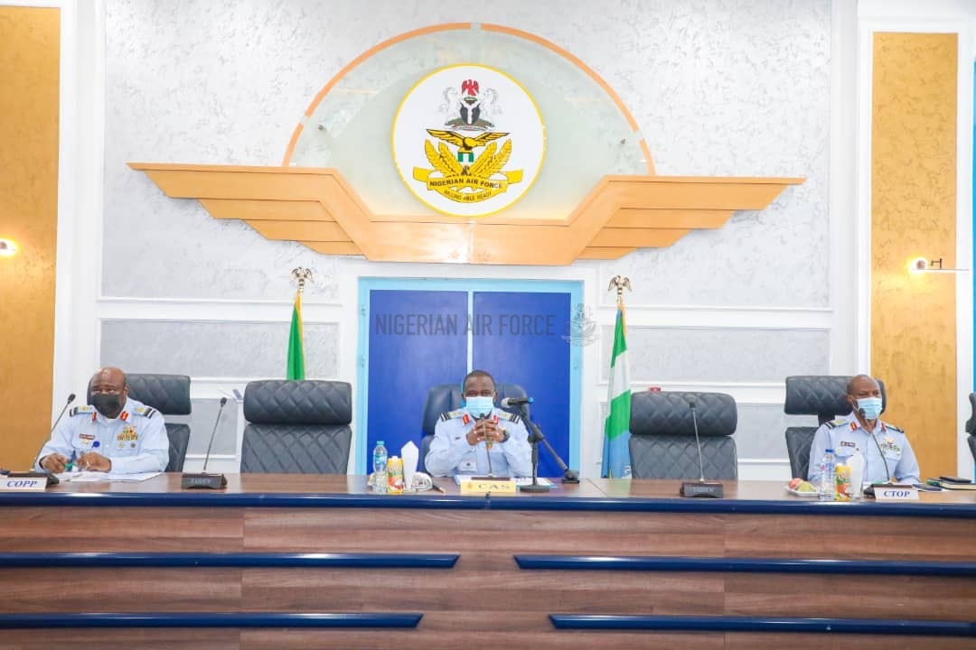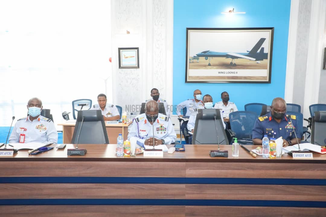 Leaning on recent gains made against terrorists and insurgents in line with the operational objectives of the Nigerian Air Force (NAF), the Chief of Air Staff (CAS), Air Marshal Oladayo Amao met with Branch Heads, Air Officers Commanding and other senior officers today, 23 February 2022 at the MD Umar Blue Room, Headquarters NAF. The meeting took stock of efforts and gains made so far in NAF's counterterrorism and counterinsurgency efforts and recommended the need for increased and sustained fire power to completely decimate the capabilities of all armed groups in the country. Air Marshal Amao used the opportunity to express his satisfaction with the progress made so far, especially in eliminating key terrorists in the Northeast and Northwest as well as destroying their hideouts. He thereafter charged NAF personnel engaged in ongoing joint operations to go after those against Nigeria’s peace and progress while ensuring that there is no hiding place for all terrorists and insurgents.