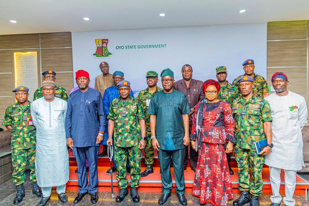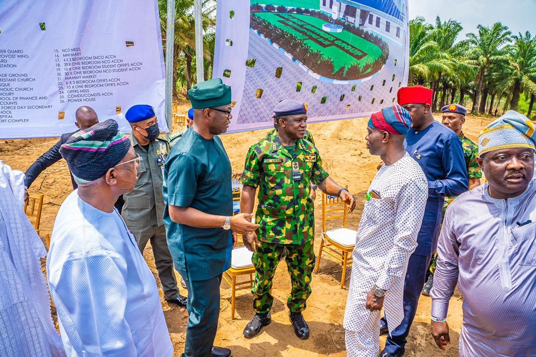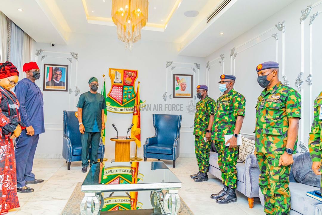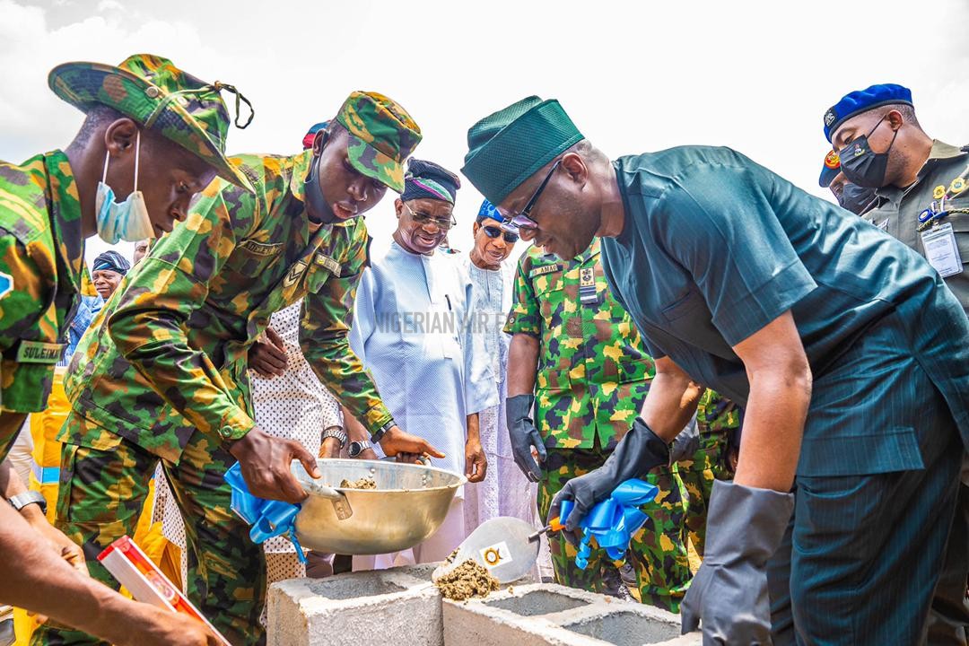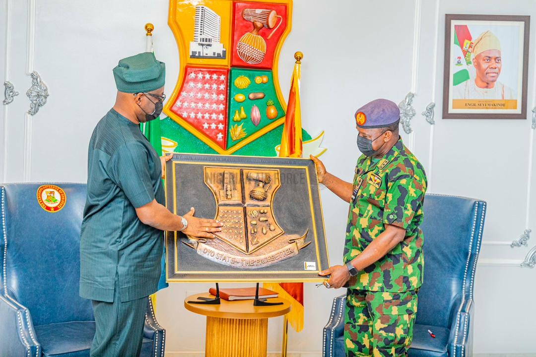 Governor of Oyo State, Seyi Makinde has expressed appreciation and gratitude to the Nigerian Air Force (NAF) and indeed the entire Armed Forces of Nigeria for their sacrifices and efforts at checkmating all forms of criminality in the Country. The Governor spoke at the Agodi Government House Ibadan when the Chief of the Air Staff(CAS), Air Marshal Oladayo Amao paid him a courtesy call and at the 58-hectares cleared site for the ground-breaking ceremony for the permanent site of the new Nigerian Air Force (NAF) Base, Ibadan. While receiving the CAS at the Government House Agodi, the Governor stated that, “I will always say that our security agencies often perform a thankless job. No one remembers them when there is peace, but people begin to ask what they were doing once there is a breach. So let me say thank you”. At the groundbreaking ceremony of the new 58-hectares NAF Base, situated at Ajia Community, Ibadan presided by Governor Makinde and Air Marshal Oladayo Amao, the Governor went on to state that the new NAF Base was part of his overall vision to engineer a modern Oyo State, just as he appealed to the good people of Ajia community to be accommodating hosts and support the State’s plans to bring rapid development to the area.