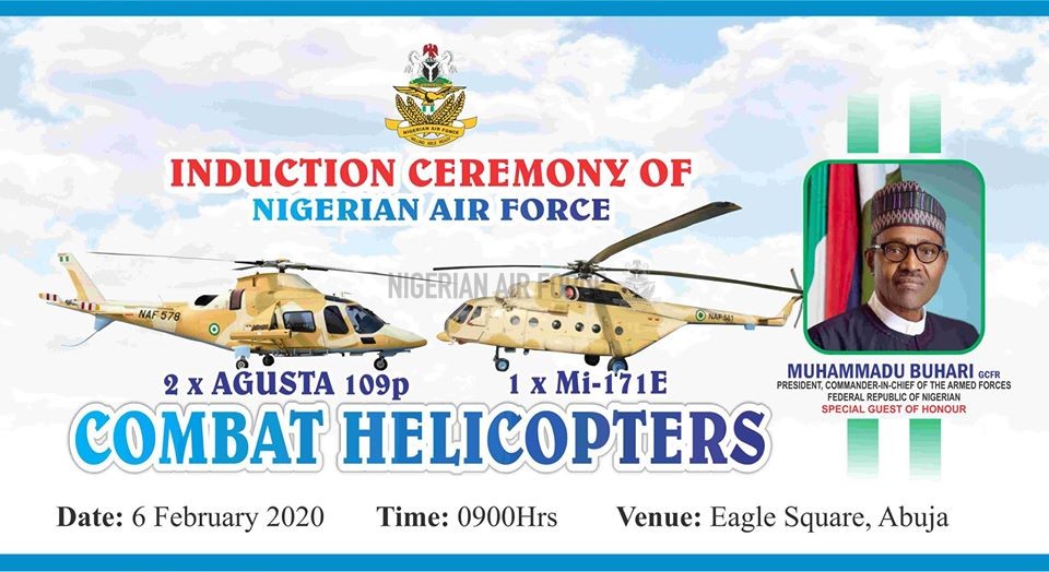 HOME > NEWS > EVENTS Latest News 25 January, 2020 POSTPONEMENT OF INDUCTION CEREMONY OF NEW AGUSTA 109 POWER HELICOPTERS... 25 January, 2020 NAF INAUGURATES MAIDEN COMMAND RESPONSIBILITY COURSE AT AIR FORCE WAR COLLEGE MAKURDI... 23 January, 2020 SUCCESSFUL CANDIDATES FOR 2019 NIGERIAN AIR FORCE DIRECT REGULAR COMMISSION, DIRECT SHORT SERVICE COMMISSION MEDICAL SPECIAL ENLISTMENT... 18 January, 2020 OPERATIONAL CAPABILITY RECEIVES BOOST AS NAF PREPARES TO INDUCT SECOND BATCH OF 2 NEW AGUSTA 109 POWER HELICOPTERS... 18 January, 2020 OPERATIONAL VISIT: CAS INSPECTS ONGOING PROJECTS IN LAGOS, REASSURES OF NAF’s COMMITMENT TO WELFARE OF PERSONNEL... 15 January, 2020 PHOTO NEWS: ACTIVITIES MARKING THE 2020 ARMED FORCES REMEMBRANCE DAY CELEBRATION... 10 January, 2020 NAF TROOPS FOIL AMBUSH, ENGAGE ARMED BANDITS IN GUN DUEL ALONG KADUNA-BIRNIN GWARI ROAD... 2 January, 2020 CIVILMILITARYRELATIONS: THE NIGERIAN AIR FORCE AIRLIFTS A SET OF CONJOINED TWINS FOR TREATMENT... 2 January, 2020 ANNOUNCEMENT: INDUCTION OF AGUSTA 109E POWER AND Mi-171E COMBAT HELICOPTERS BY THE NAF AT EAGLE SQUARE ABUJA... 1 January, 2020 NEW YEAR MESSAGE FROM THE CHIEF OF THE AIR STAFF Air Marshal SB Abubakar DFS GSS psc(+) fwc fdc(+) MSc... 1 January, 2020 NAF APPOINTS NEW BRANCH CHIEFS, REDEPLOYS AIR OFFICERS COMMANDING, OTHER SENIOR OFFICERS... 26 December, 2019 CHRISTMAS CELEBRATION: CAS FETES FRONTLINE TROOPS IN MAIDUGURI, YOLA, KATSINA, CHARGES THEM TO REMAIN FOCUSED... « Previous Next » Showing 613 to 624 of 650 results 1 2 ... 46 47 48 49 50 51 52 53 54 55